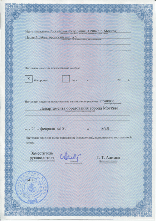 Днем рождения школы считается 22 октября 1989 года, когда школе предоставили нынешнее здание в Бабьегородском переулке. С этого момента школа начала потихоньку расти, в новом здании поселились 3 первых, 2 вторых и 1 третий класс. Нам принадлежал только первый этаж. Директором школы стал Михаил Васильевич Смола. Ежегодно мы отмечаем День Рождения школы, на праздник с удовольствием приходят и выпускники.